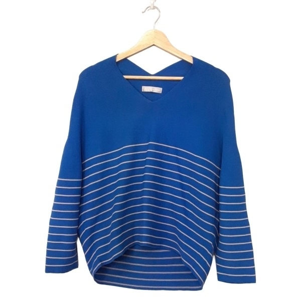 > ダーマコレクション DAMAcollection 長袖カットソー サイズ2 M - ネイビー×ベージュ レディース Vネック/ボーダー 美品 トップス