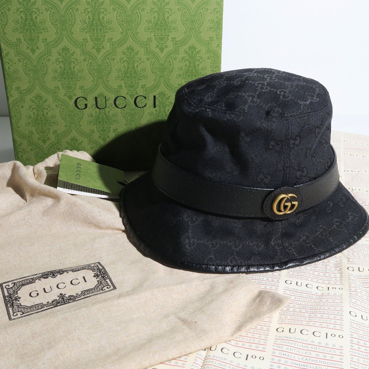 > 【箱付・新品・定価79,200円】GUCCI GGキャンバス バケットハット ダブルG sizeM 58cm 576587 4HG53 1060 ブラック グッチ 帽子