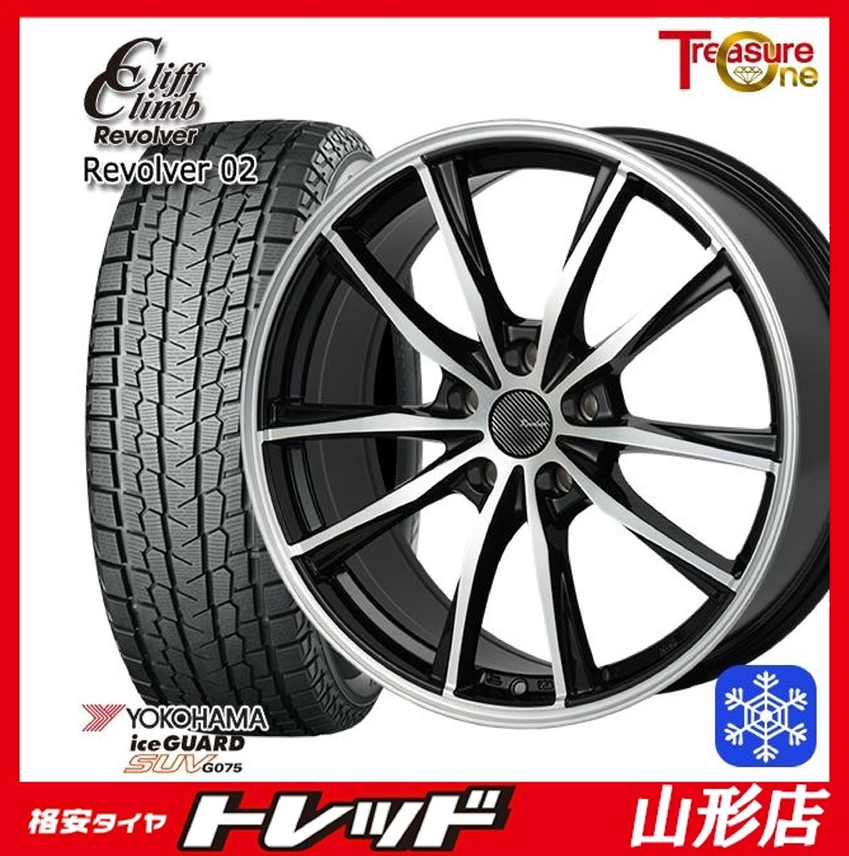 - 山形店 新品 冬タイヤホイール4本セット リボルバー02 18インチ 7.0j 5H114.3 +40 BP ヨコハマ アイスガードSUV G075 225/60R18 2025年製