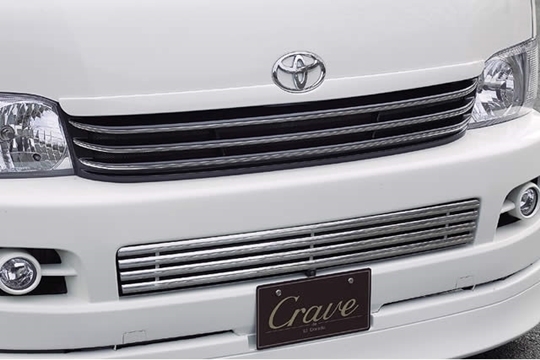 - 「南海オート/Crave」200系ハイエース ワイド(1~2型)用フロントグリル(トップモール&メッキモール付き)