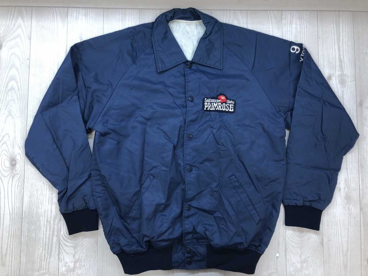 - 埼玉大学 レトロ オールド スポーツ プリムローズ PRIMROSE '83 アメリカンフットボール カレッジ サークル コーチ ジャケット メンズ 紺