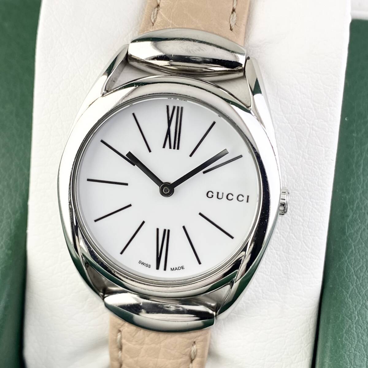> 【1円〜】GUCCI グッチ 腕時計 メンズ レディース兼用 140.5 ホースビット ホワイト文字盤 ラウンドフェイス 可動品