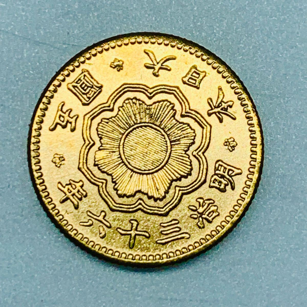 - 金貨 日本古銭 新五円金貨 5圓 明治三十六年 小型金貨 古銭 貴重 コレクション 古銭 菊紋 w59