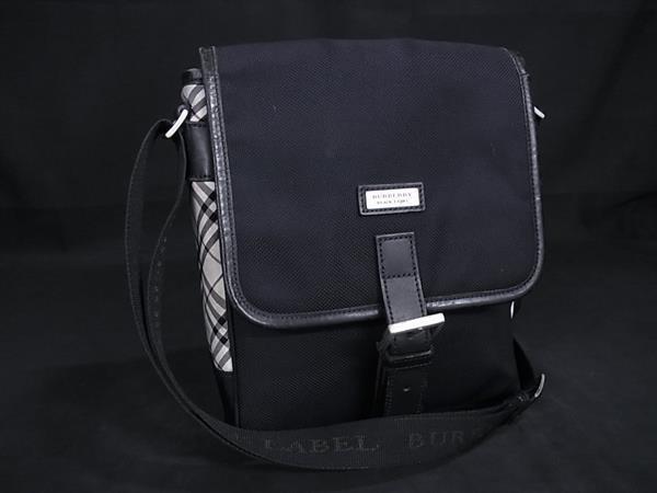 > 1円 BURBERRY バーバリーブラックレーベル ナイロンキャンバス チェック柄 クロスボディ ショルダーバッグ 斜め掛け メンズ BP5875