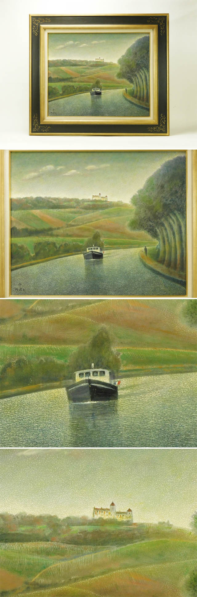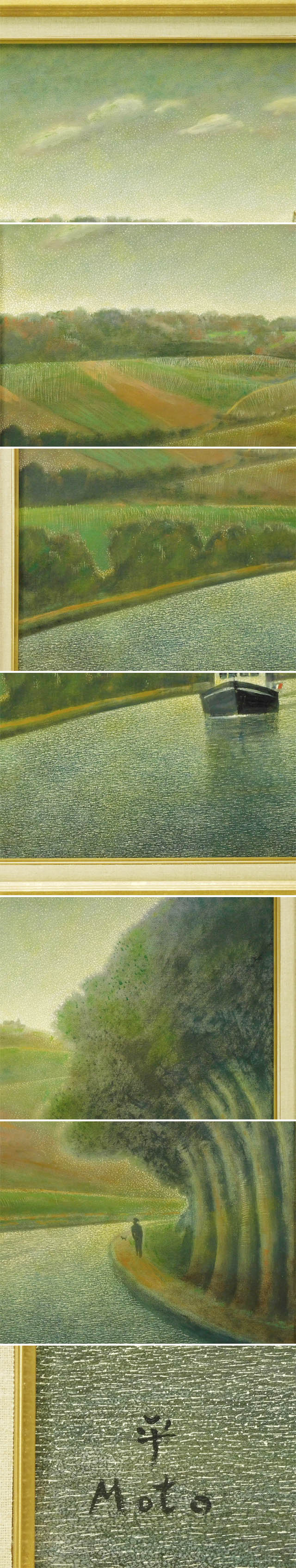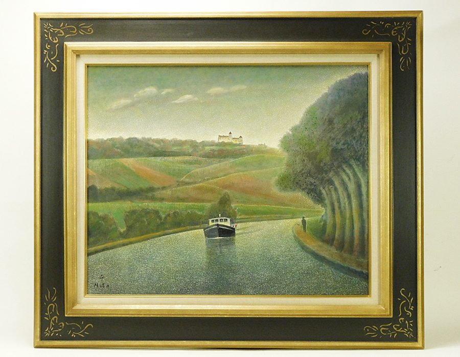 - 元村平 ブルゴーニュ運河 仏F12 油彩 額装 2018年 高島屋個展出品作 専用タトウ 小冊子付 フランス国立図書館買上 幻想的世界観 s25110205