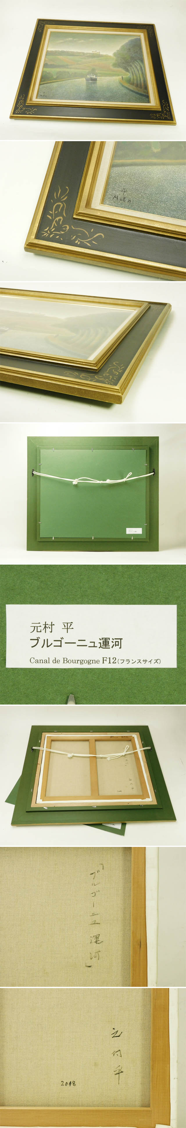 > 元村平 ブルゴーニュ運河 仏F12 油彩 額装 2018年 高島屋個展出品作 専用タトウ 小冊子付 フランス国立図書館買上 幻想的世界観 s25110205