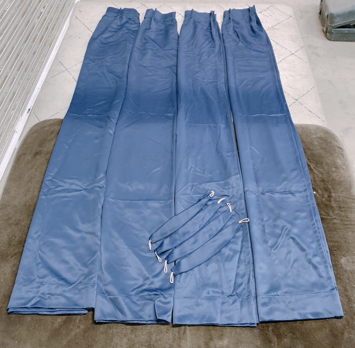 - きれい カーテン 4枚セット 防炎カーテン おもり付き 100×225cm ネイビー 無地 インテリア 特大 引取歓迎 茨城県常陸大宮 1027か3 D2 120
