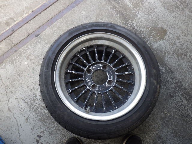 - 【中古】メーカー不明フィンタイプアルミ 7.0J-15 114.3 4H +15位?195/50R15 RE01 1本 240913-02