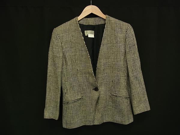 > 1円 GUCCI グッチ シルク92%×リネン8% 千鳥柄 ジャケット アウター 上着 表記サイズ 38 洋服 レディース ブラック系 FP4810