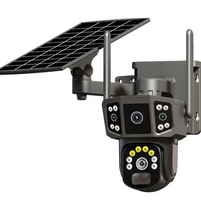 - 新作防犯カメラ 屋外 ソーラー 600万画素 wifi 充電式 ワイヤレス 三画面表示 自動追跡 音声通 動作検知 赤外線夜視 6+4+4MP画素 防水