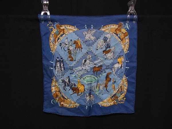 - 1円 HERMES エルメス Musee Vivant du Cheval Chantilly【シャンティイ城馬】プチカレ ガヴロッシュ シルク ハンカチーフ ブルー系 FV3481