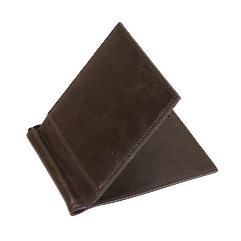 - 送料0円 カードケース 001 [ブラウン] 二つ折り スキミング防止 RFID マネークリップ 薄型 カード入れ 札ばさみ PU メンズ レディース