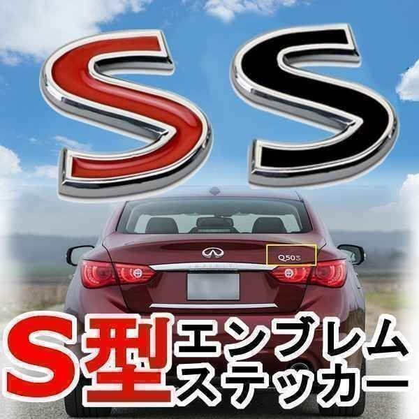 > 送料0円 エンブレム ステッカー「S」 ブラック メタリック ミニサイズ アルファベット 英語 立体 スポーツ カスタム パーツ 文字 外装