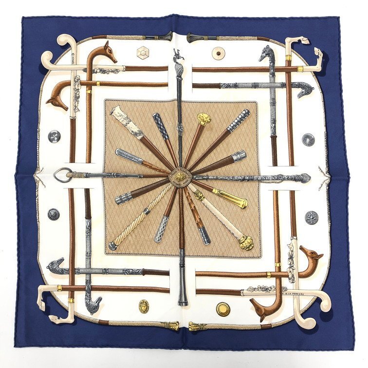 > HERMES エルメス スカーフ カレ45 Cannes et Pommeaux ステッキ【DKAG3006】