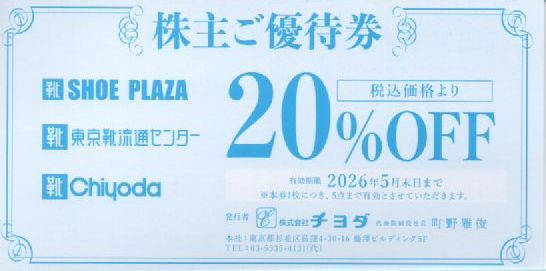 > チヨダ 株主優待券 20%割引券 5枚 有効期限:2026年5月31日 普通郵便・ミニレター対応可