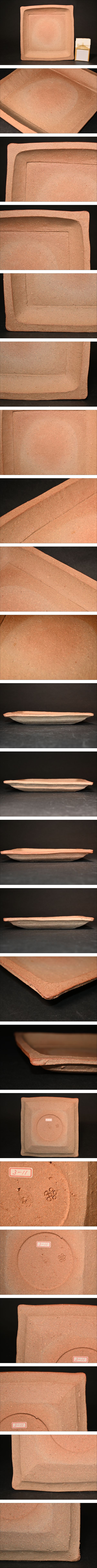 > 真贋保証■森陶岳 造■ 角皿 箱無 備前 備前焼 四方皿 県重要無形文化財 茶道具 検:窯変 朱泥