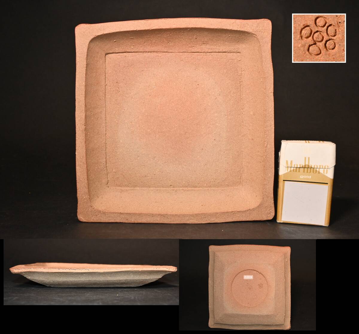 - 真贋保証■森陶岳 造■ 角皿 箱無 備前 備前焼 四方皿 県重要無形文化財 茶道具 検:窯変 朱泥