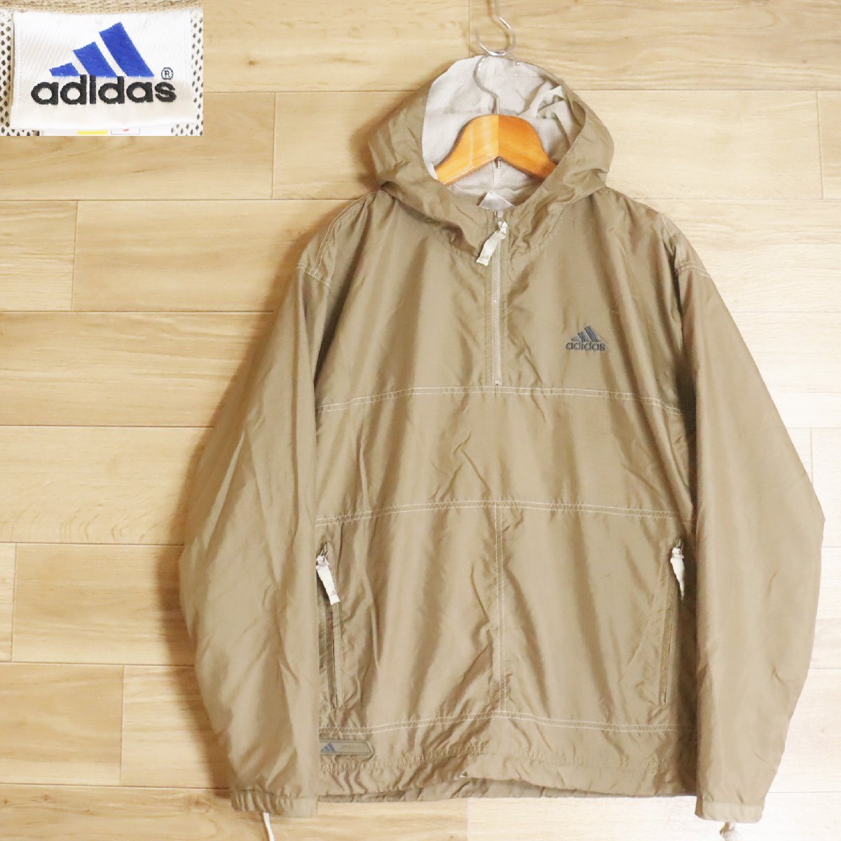 > E11S/R6.5-5 adidas アディダス アノラックパーカー ハーフジップ プルオーバージャケット ウィンドブレーカー S ベージュ系