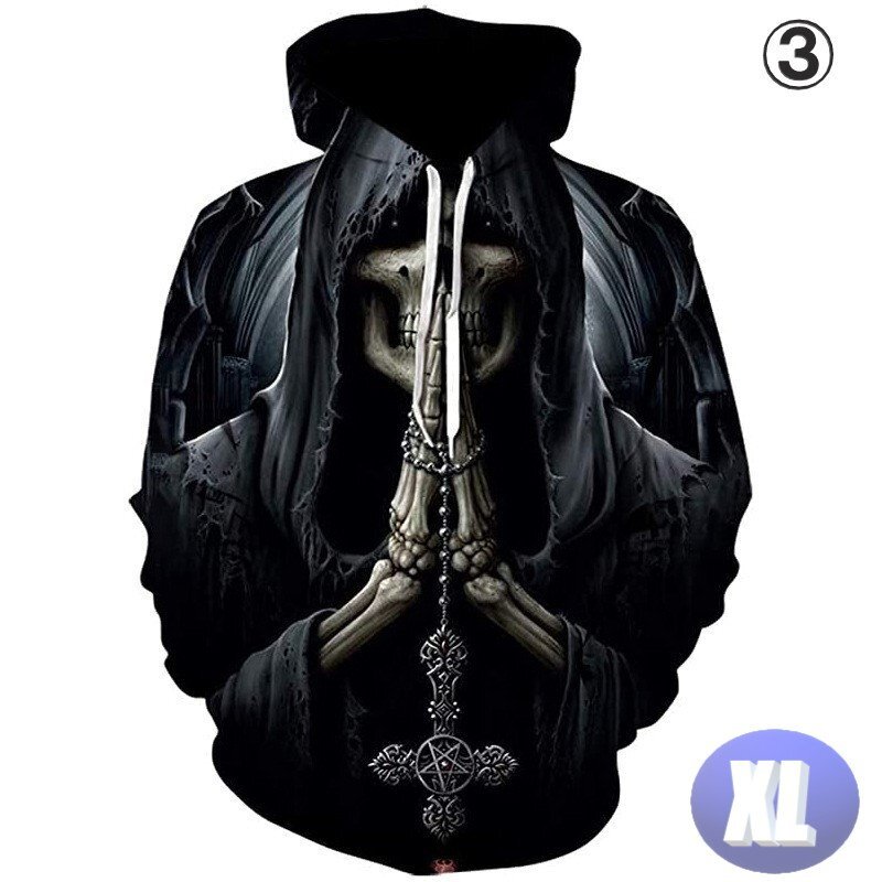 - フード付き ドクロパーカー カラー3 XL トレーナー アウター 防寒 n716