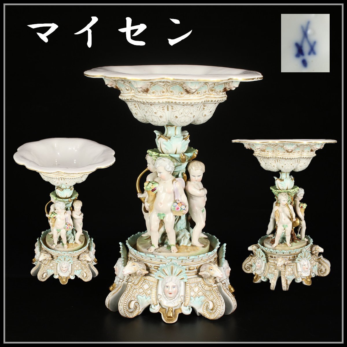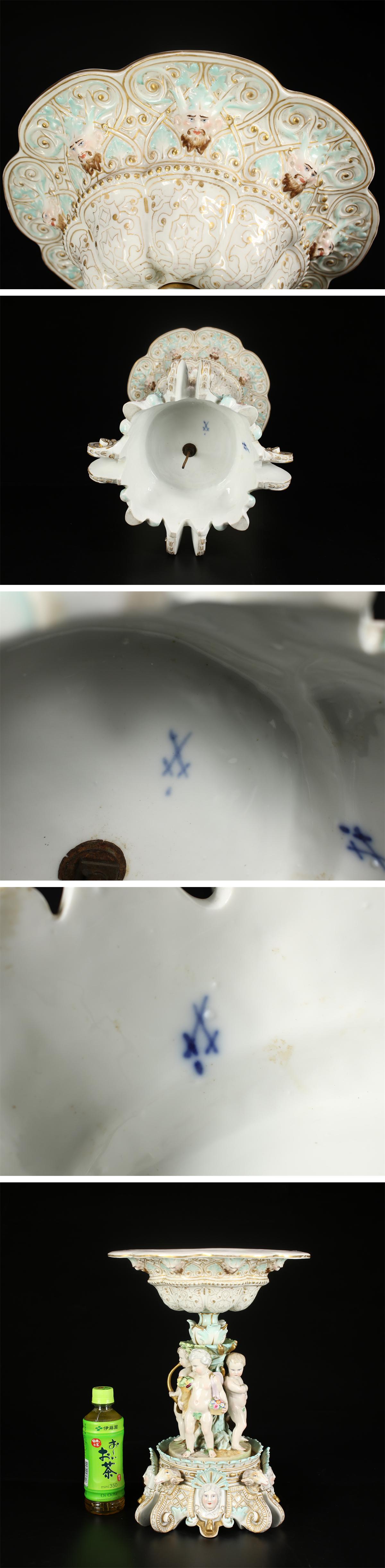 > 【吉】CK551 十九世紀 ドイツ王室御用 MEISSEN 【マイセン】 金彩 色絵 コンポート 大置物 高38㎝/状態いい美品!