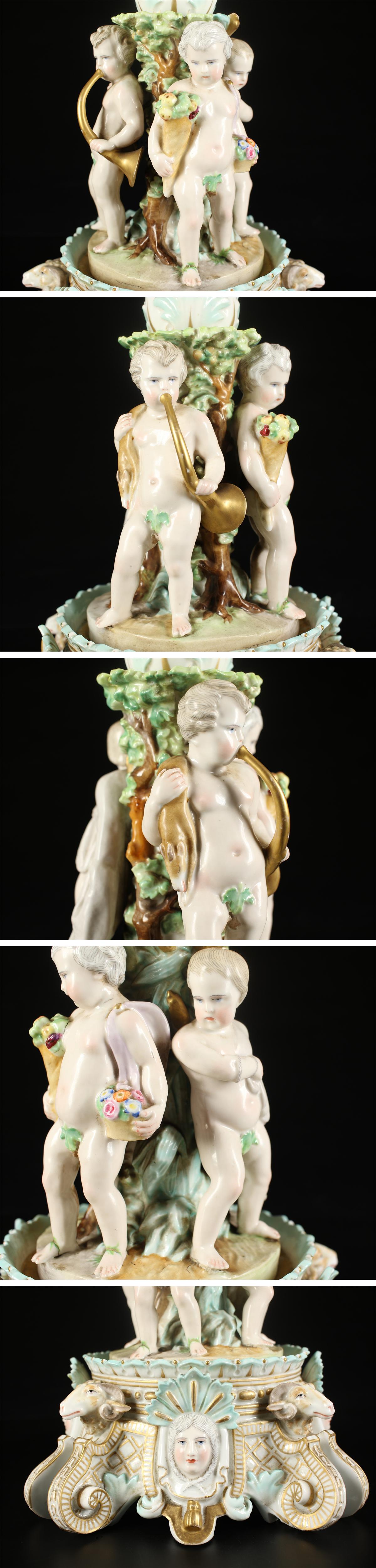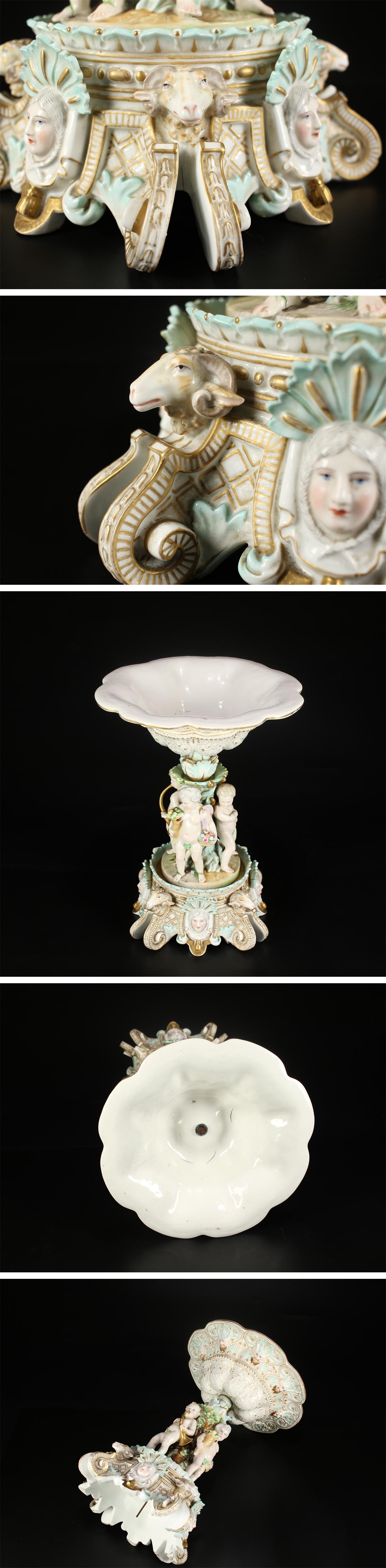 - 【吉】CK551 十九世紀 ドイツ王室御用 MEISSEN 【マイセン】 金彩 色絵 コンポート 大置物 高38㎝/状態いい美品!