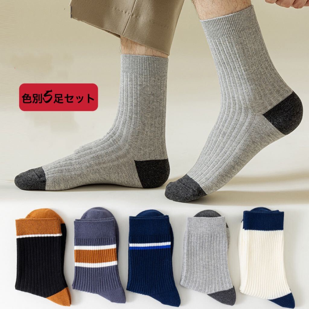 - 新品メンズソックス 5足セット 通気性ビジネス ロング クルー丈 オールシーズン スポーツ まとめ売り男性靴下