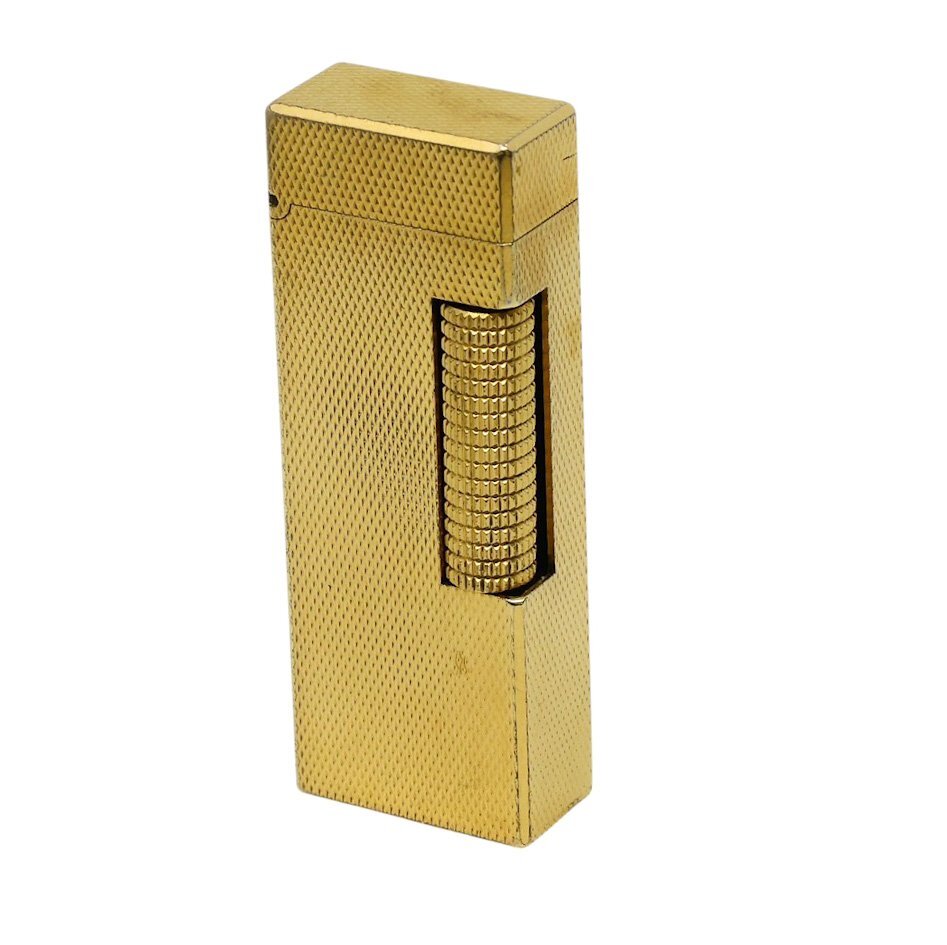 - ■ 1円 ~ 正規 中古品 訳アリ 着火○■ ダンヒル Dunhill ■ スクエア ローラー式 ガスライター ■ 総柄 ゴールド 金 高級 重厚 喫煙