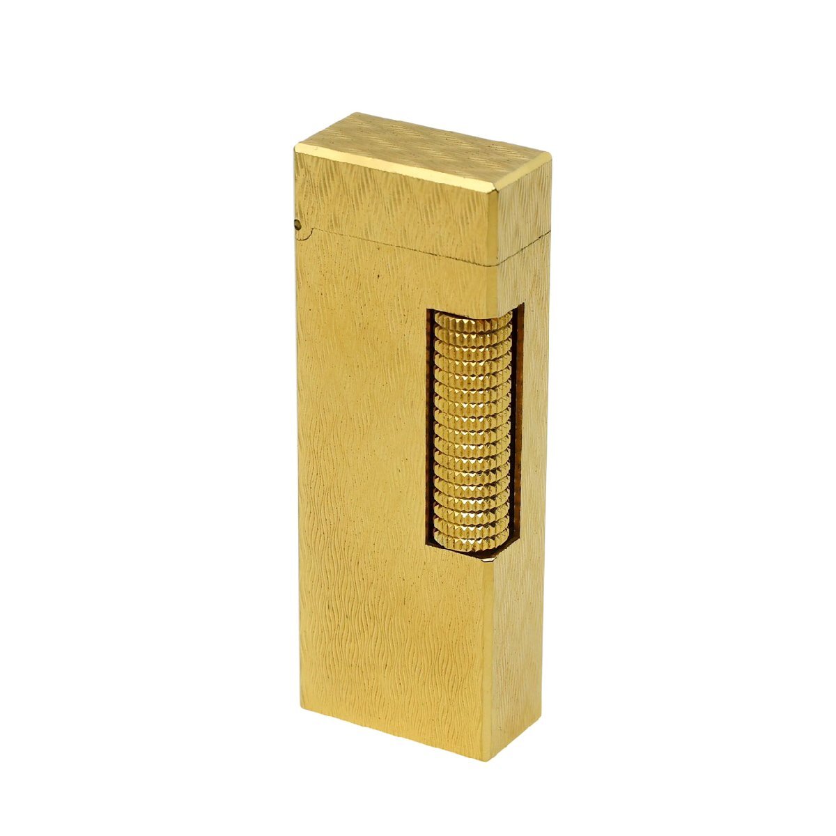 - ■ 1円 ~ 正規 中古 着火確認済 訳アリ ■ ダンヒル Dunhill ■ スクエア ローラー ガスライター ■ シェブロン柄 ゴールド 金 高級 重厚