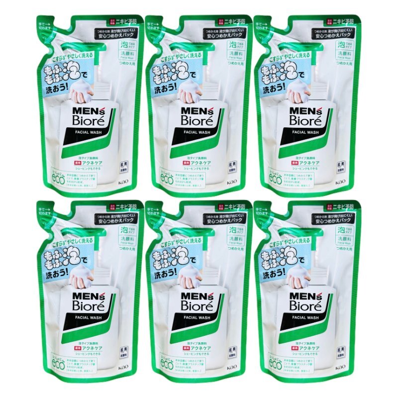 - メンズビオレ 泡洗顔料 泡タイプ 薬用アクネケア洗顔 つめかえ用 130ml 6個セット 詰め替え 緑のパッケージ