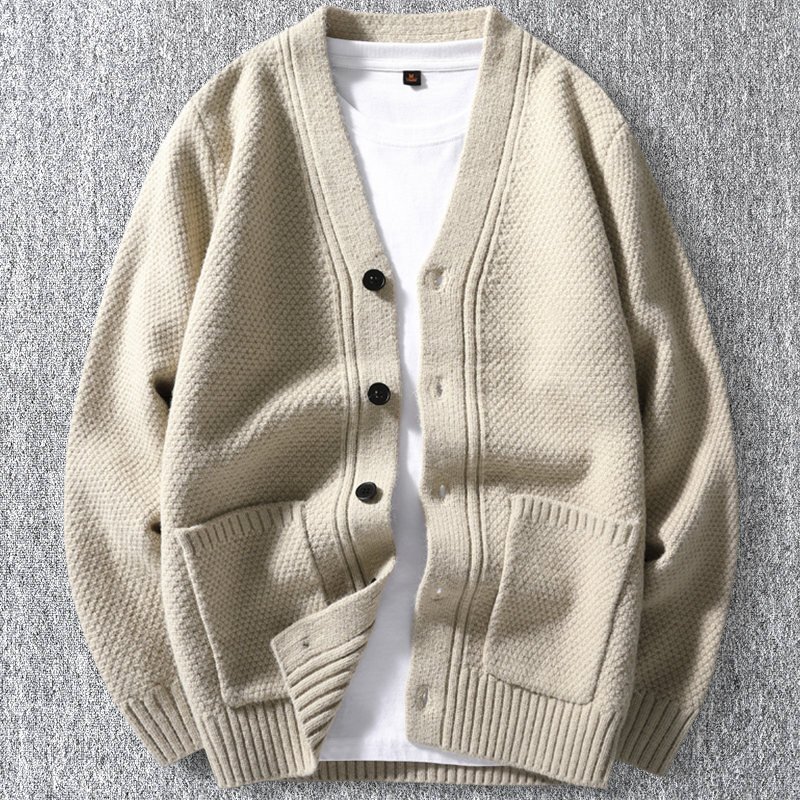 > 新品 ウール混 ニット カーディガン 秋冬 厚手 無地 Vネック セーター メンズ 秋冬 暖かさ ニットジャケット アウター ベージュ T6179-2XL