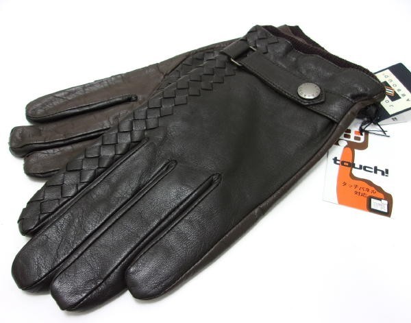 - 新品★JOSEPH ABBOUD ジョセフアブード★タッチパネル対応 レザーグローブ★手袋★24cm ダークブラウン★スマホ対応★羊革イントレチャート