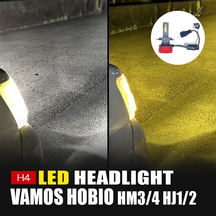 - バモス ホビオ LED ヘッドライト H4 ロービーム 3000K 8000K カメレオン 色温度調整 アプリ 連動 高輝度 イエロー ホワイト LEDヘッドライ