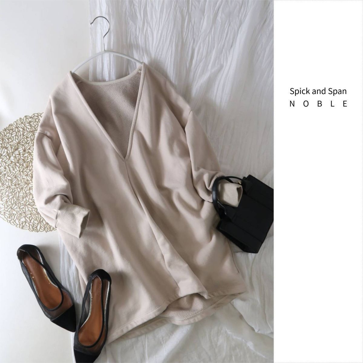 > 1.8万☆スピック&スパン NOBLE☆洗える ファインスウェットVネック 日本製☆A-O 6086