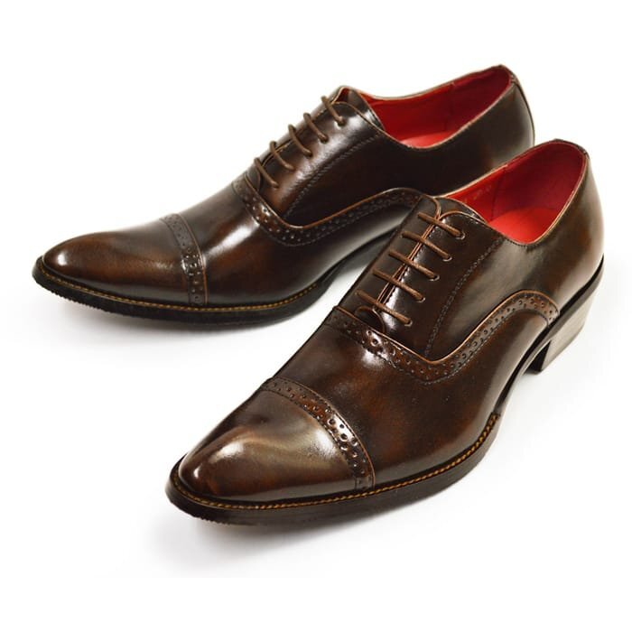 > 新品■26cm ビジネスシューズ 紳士靴 4.5cmヒール メンズ 革靴 ストレートチップ 紐靴 脚長 フォーマル 冠婚葬祭 イタリアンデザイン