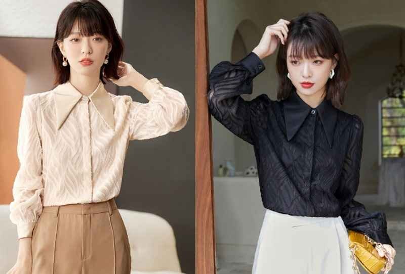 - 全2色 長袖シャツ 裏ボア付き 厚手 切り替え 体型カバー 着痩せ sweet系 L ブラック