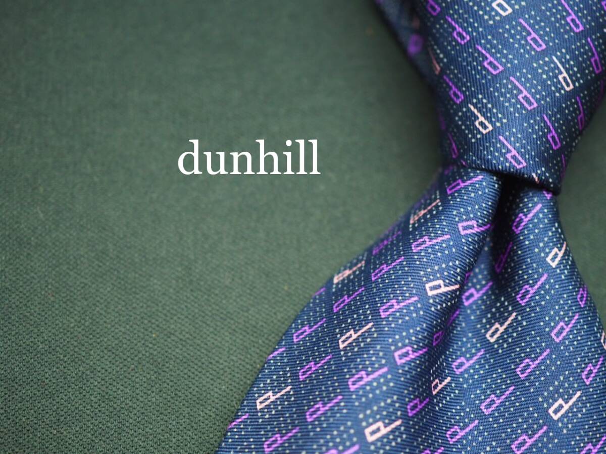 > 美品【dunhill ダンヒル】 G1430 英国製 dロゴ ネイビーパープル系 SILK ブランド ネクタイ 古着 良品 転売 仕入
