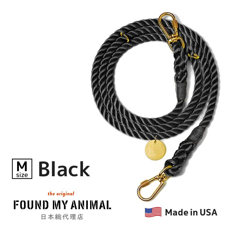 - FOUND MY ANIMAL アジャスタブル リード ブラック Mサイズ 長さ調整可能 犬 マリンロープ ペット 散歩 アメリカ製 ADJUSTABLE LEASH