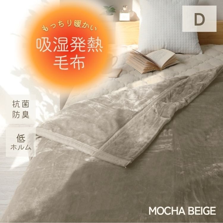 - 【ダブル モカベージュ】あったか毛布 吸湿発熱 丸洗い可能 F-Tech 3層構造 抗菌・防臭 静電気防止 シルキータッチ あたたかい 掛け布団