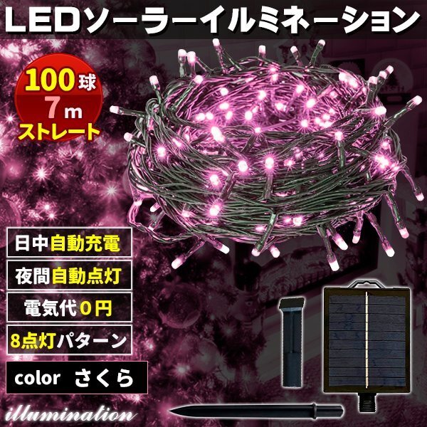 - ソーラー イルミネーション 屋外 クリスマス ストレート 屋外用 イルミネーションライト 100球 さくら