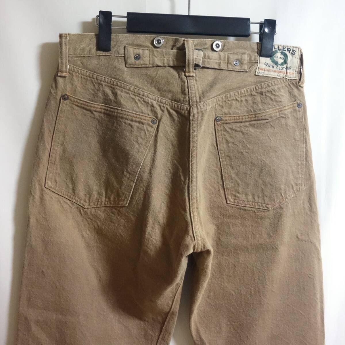 > 【HELLER'S CAFE ヘラーズカフェ 1910's OLYMPIC BRAND シンチバック ワークパンツ W33】ブラウンデニム ウエアハウス