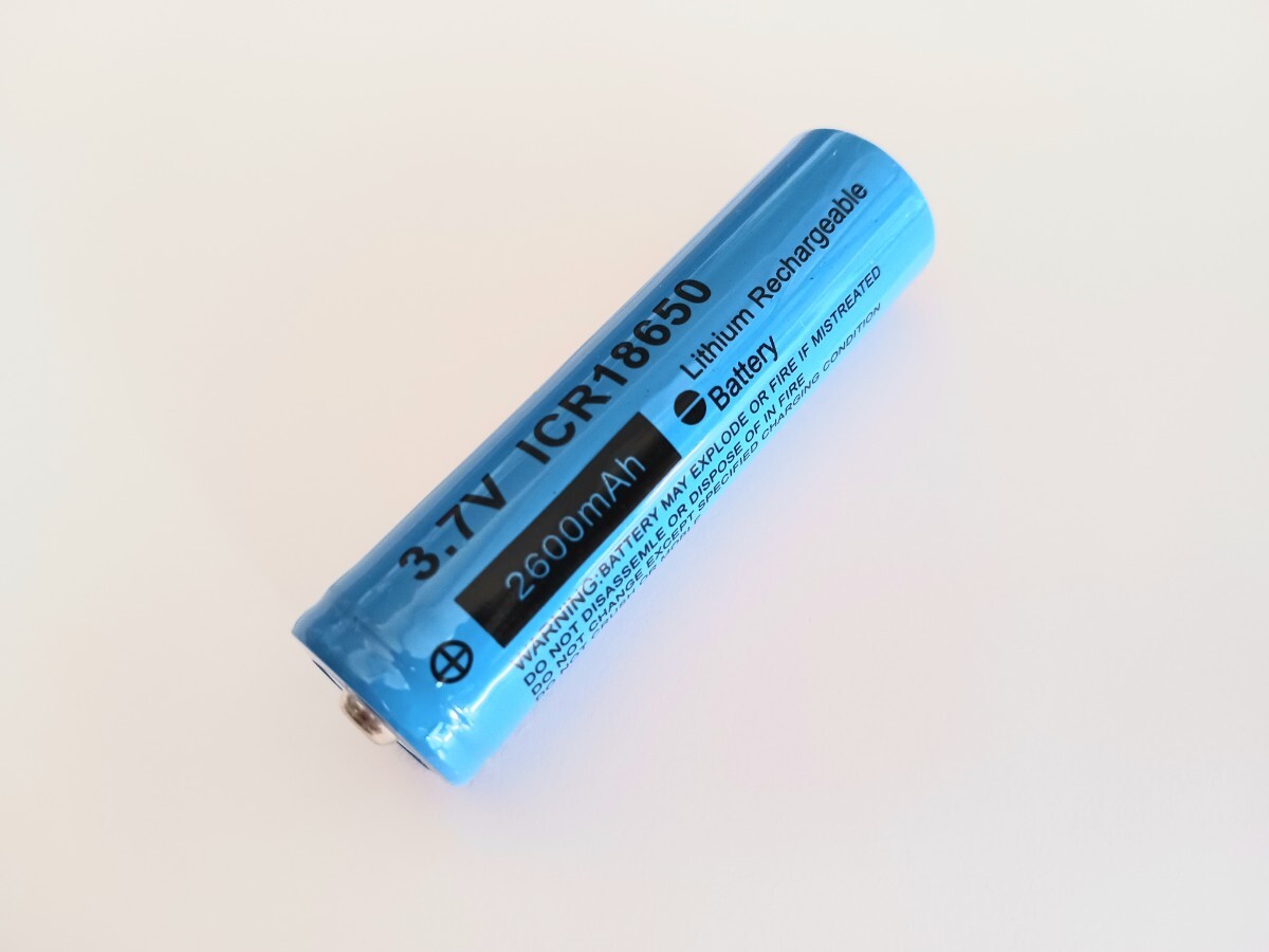 - 18650充電バッテリー 2600mAh ボタンタイプ 充電池 1個