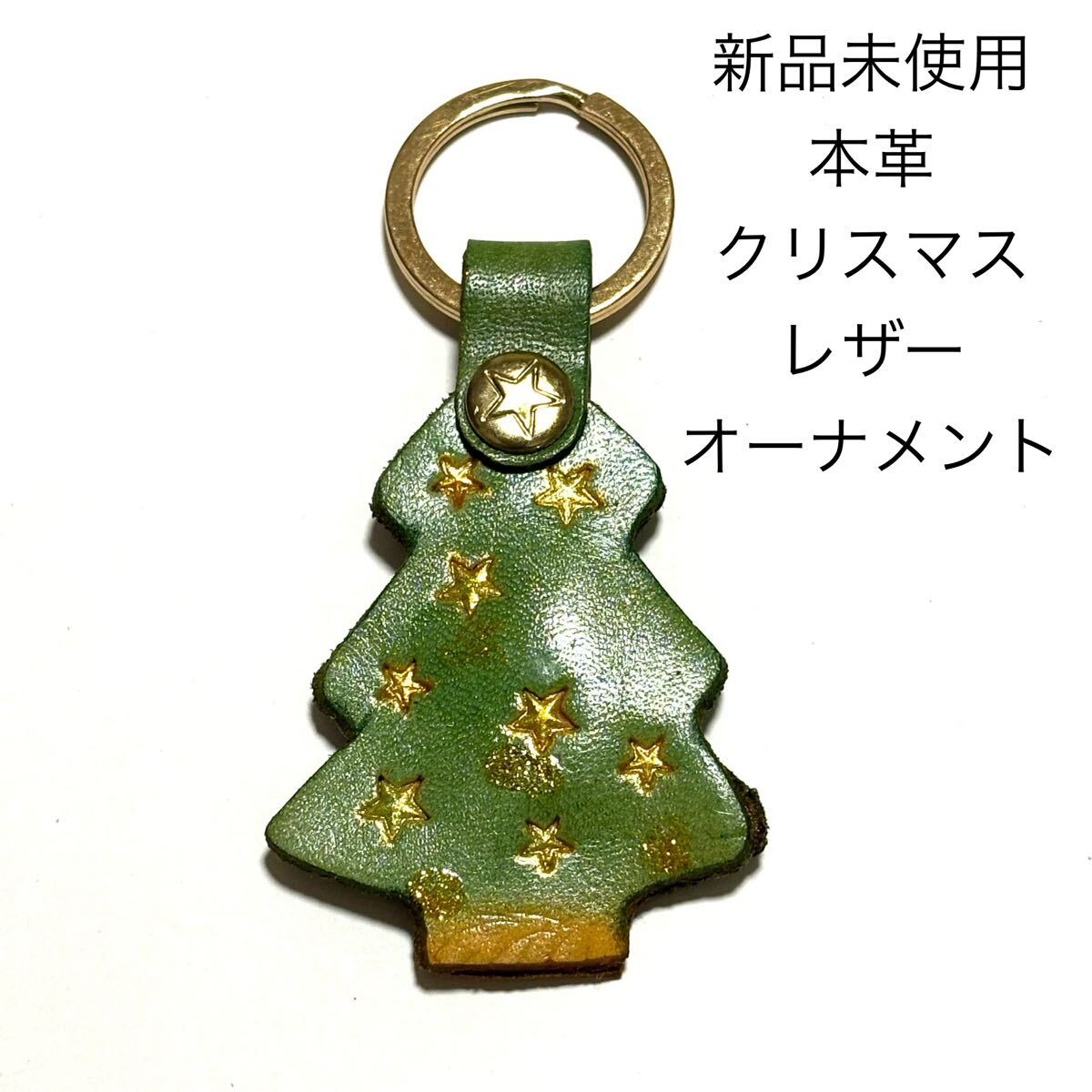 - ★新品未使用 本革 クリスマスツリー レザーキーホルダーチャーム オーナメント キーリング 本牛革 緑 グリーン