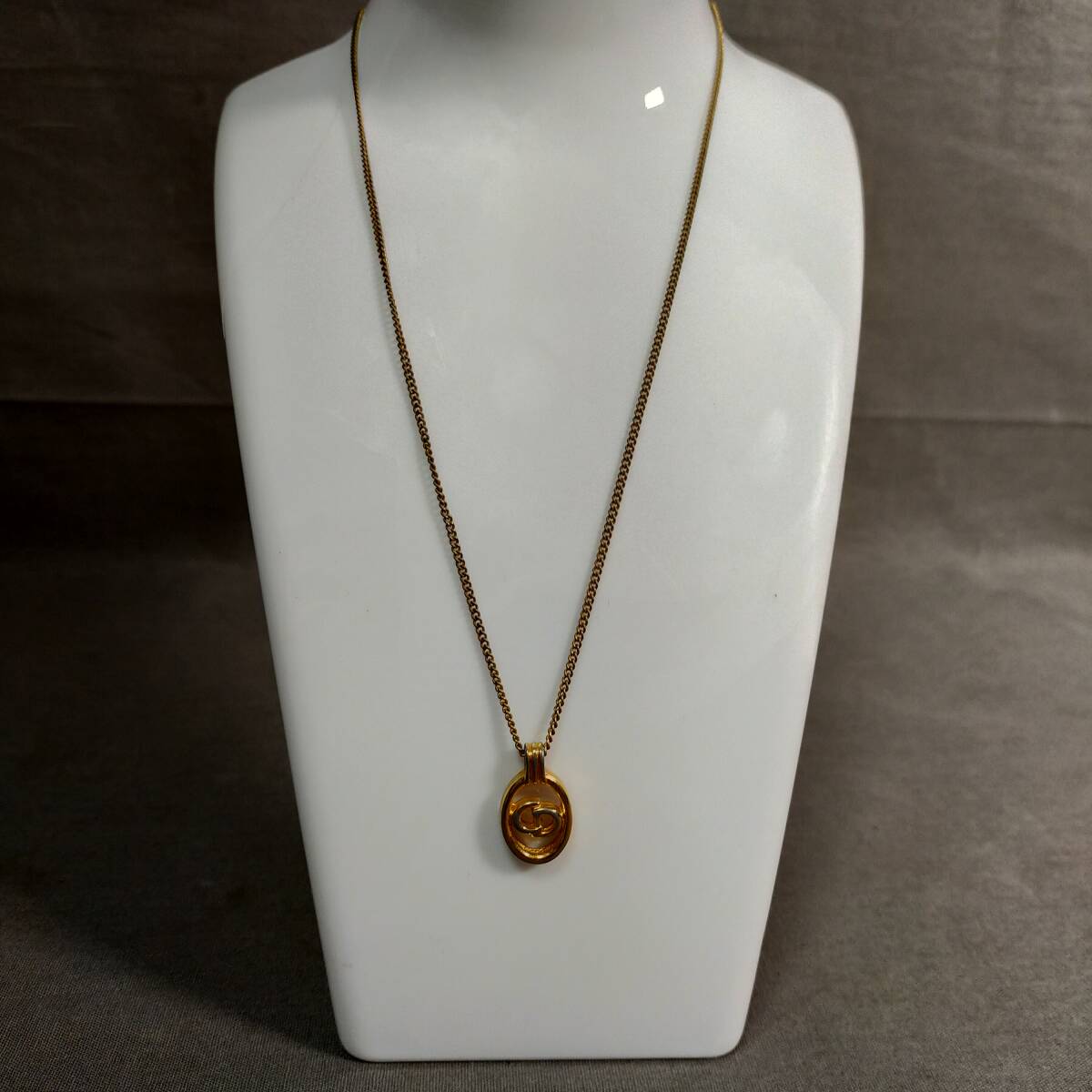 > △ 11/6 296931 Christian Dior クリスチャン ディオール ネックレス CD ゴールドカラー アクセサリー