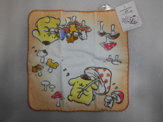 - サンリオ ポムポムプリン ミニタオル 1枚 タオルハンカチ きのこ 24.5×24.5㎝位