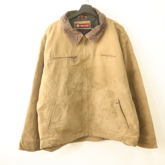> V109 2000年代製 DRIDUCK ダックジャケット■00s 表記2XLサイズ ブラウン GOODYEAR 刺繍 ワーク 襟コーデュロイ アメカジ 古着