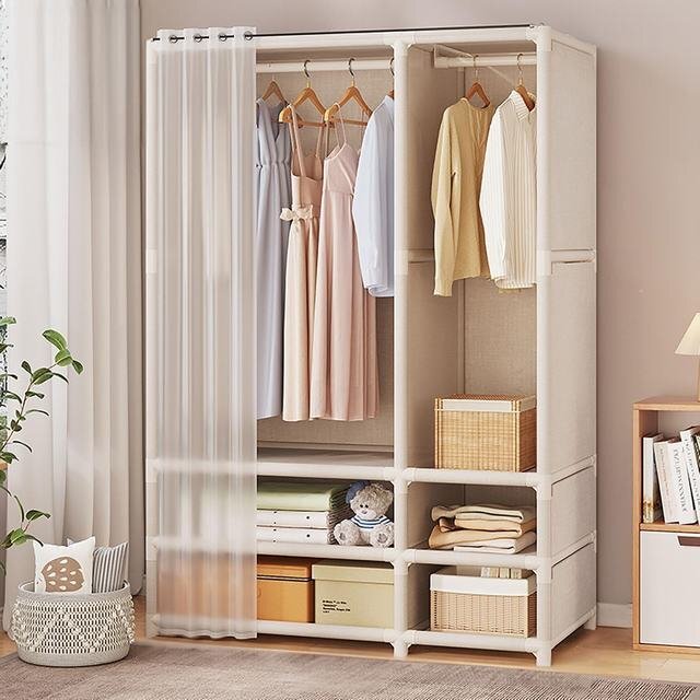 - ハンガーラック カーテン付き ワードローブクローゼット 分割 洋服収納 引き出し付き 大容量 防塵 防虫 防湿