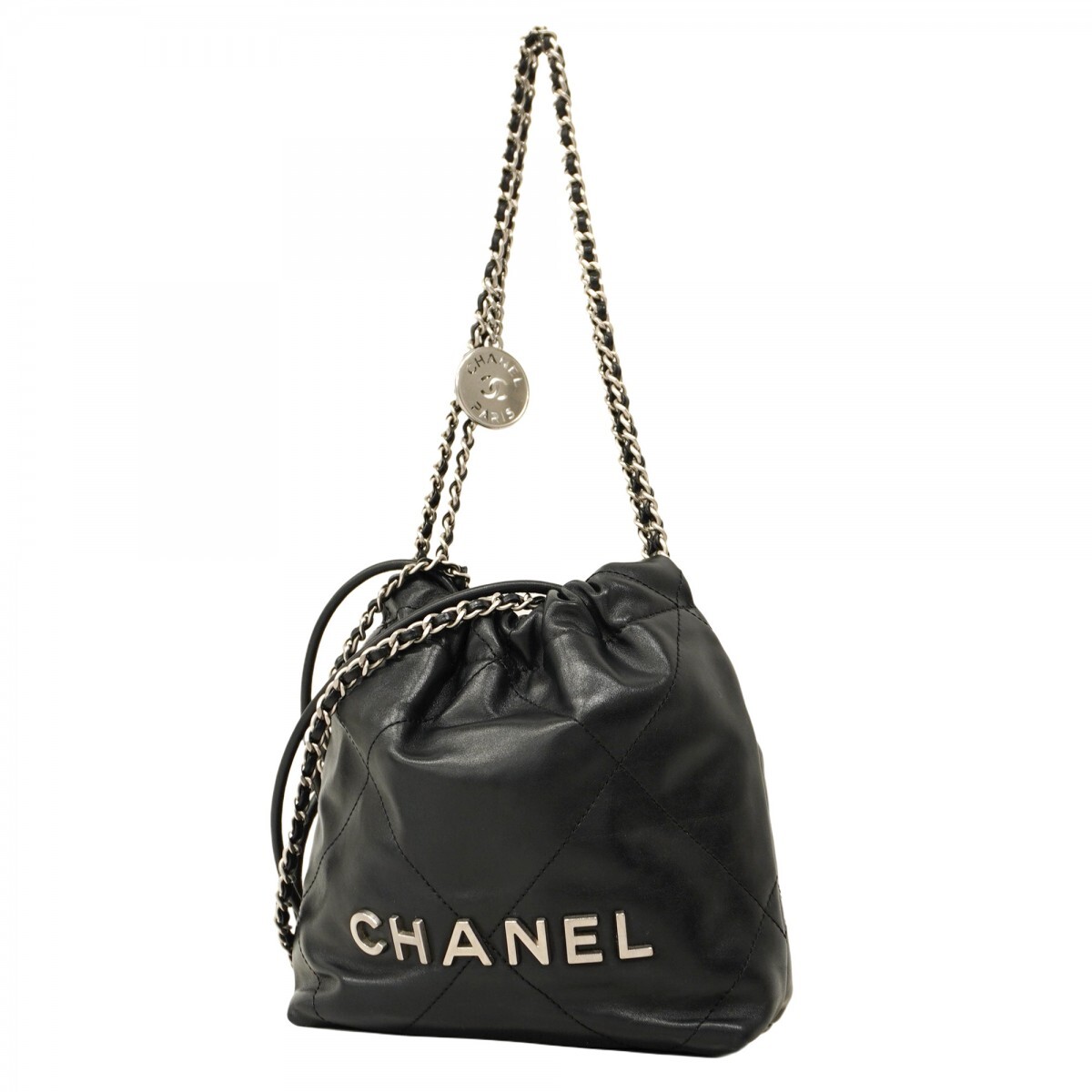 > 【5ob1277-h】シャネル ハンドバッグ チェーンショルダー シャネル22 ミニ カーフ ブラック シルバー金具【中古】レディース