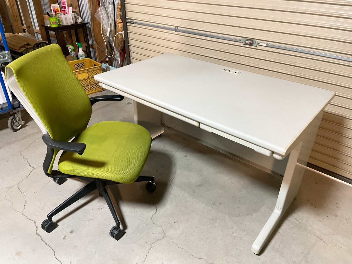 - 在庫2 中古 平机 事務椅子 セット テーブル パソコンデスク 作業台 チェア 椅子 イス いす 事務所 店舗用品 茨城県常陸大宮 1111え1 M 家DC