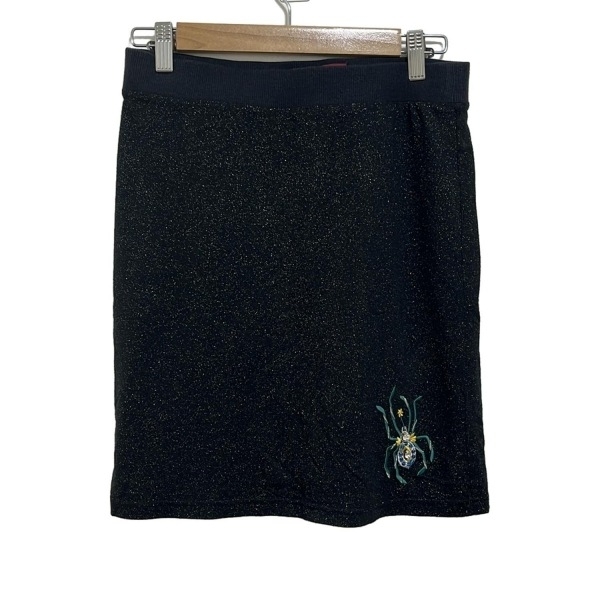 > マッシュマニア mash mania スカート - 黒×ダークグリーン×マルチ レディース ひざ丈/ラメ/ウエストゴム/ラインストーン/ビーズ ボトムス
