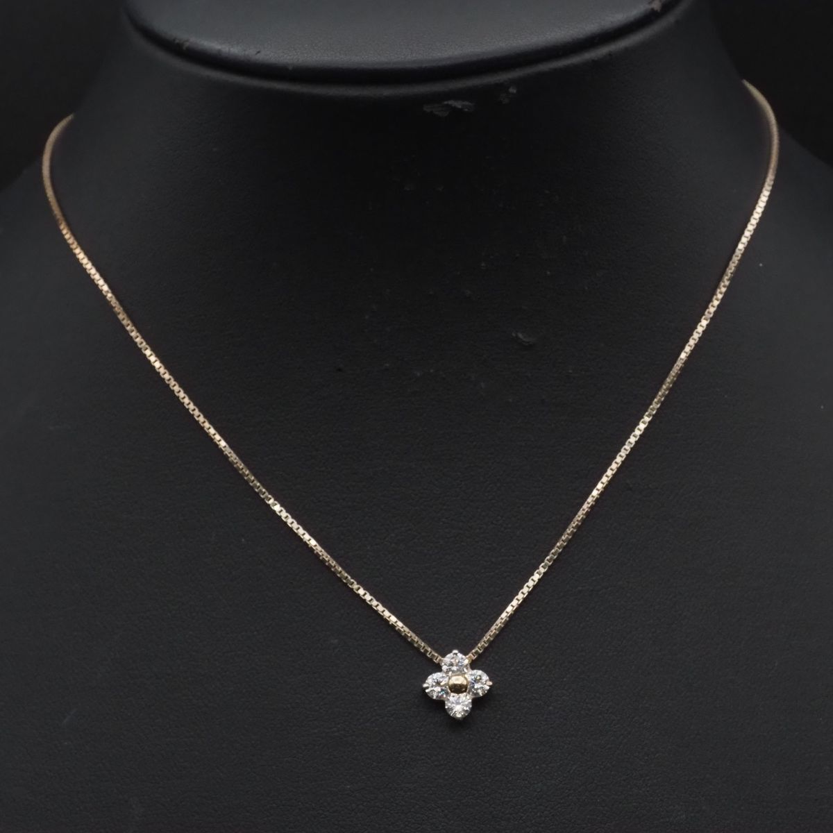 - H606 ダイヤモンド風 STERLING刻印 ペンダント ネックレス フラワー ゴールド デザイン シルバー